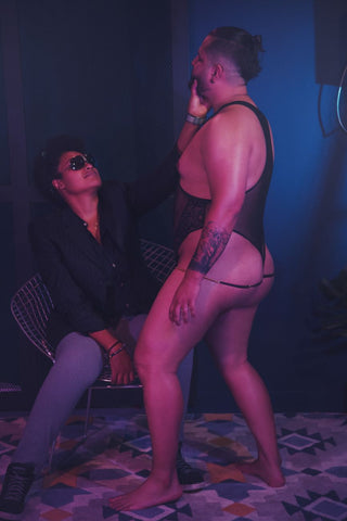 A bodysuit that combines the romance of lace with the strength of the mesh. Bare back, Light coverage.