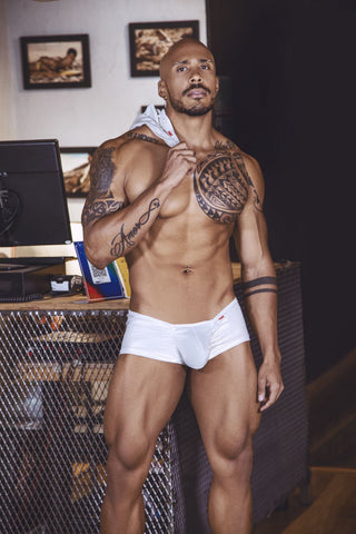 Features a subtle design that really shows up as it stretches to form a sleek, body-defining fit that nicely accentuates your contours. These full-coverage trunks are ideal for any occasion. Pouch is seamed for support and definition.