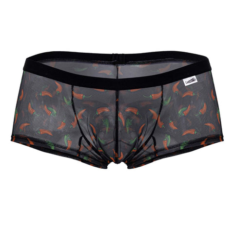 Turn up the heat with these playful men’s trunks. Made from soft, breathable black mesh and decorated with an all-over with different prints, they deliver a spicy twist on everyday underwear. The low-rise cut and supportive pouch create a flattering, body-hugging fit that’s perfect for adding some fun to your top drawer or a night of adventure.
