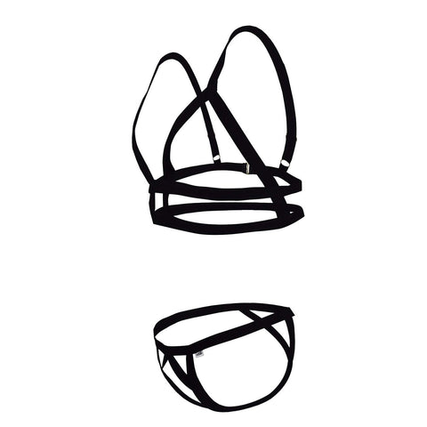 Unleash your boldest self with this ultra-daring harness and thong set! Designed for those who love to push the limits of style and confidence, this strappy masterpiece blends edgy design with a sleek, body-hugging fit. Whether you're making a statement or setting the mood, this set guarantees all eyes on you.