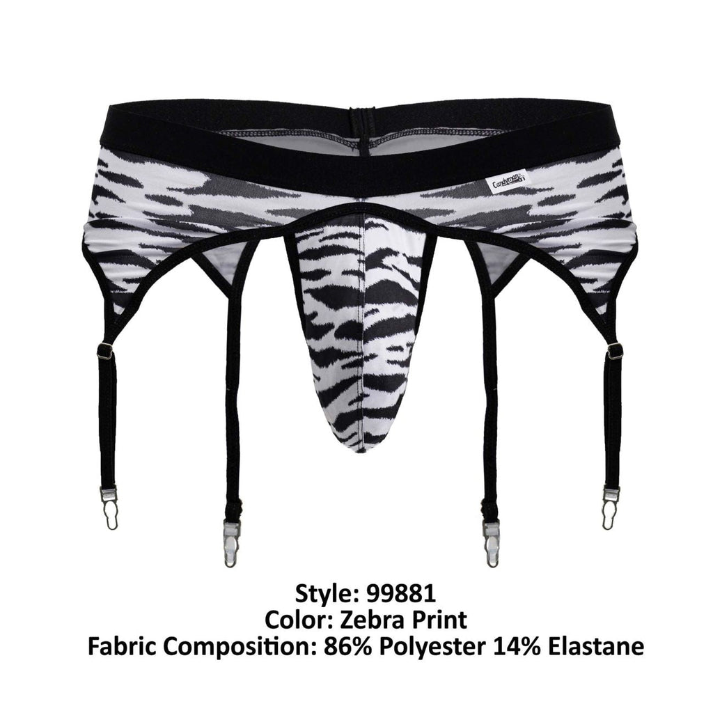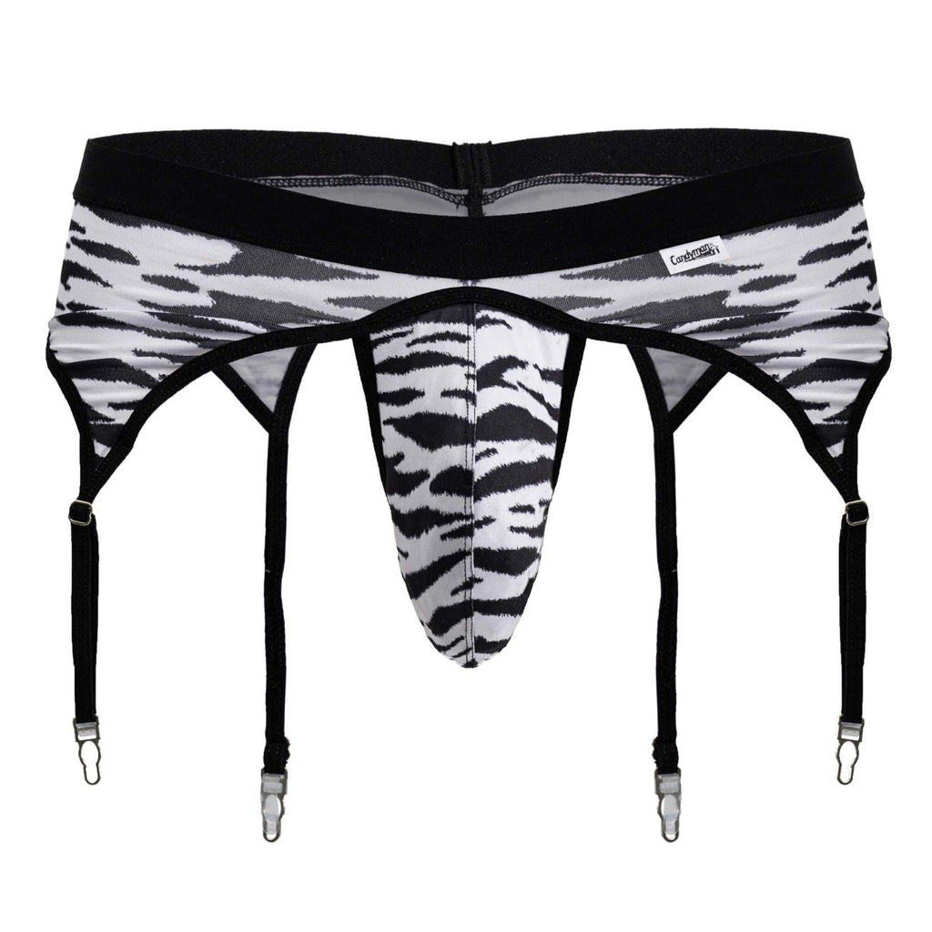 Make a fearless fashion statement with this men’s garter brief. Featuring a bold black-and-white zebra pattern, detachable garter straps, and a sleek low-rise cut, it blends wild style with a sensual edge. The supportive pouch and stretchy fabric provide comfort while the adjustable garters invite you to pair it with your favorite thigh-highs for an unforgettable look.