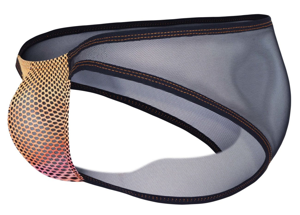 Add a daring touch to your underwear collection with these men’s briefs, featuring a unique combination of style and sensual appeal. The front pouch showcases a colored and black patterned fabric, adding an eye-catching contrast that emphasizes comfort and support. The back is crafted from a semi-sheer, black mesh material, creating a bold and alluring look that’s also breathable and lightweight. With a snug fit and high-quality construction, these briefs are designed to provide all-day comfort without compromising on style.