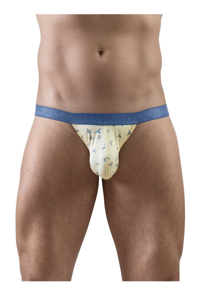 This men’s bikini brief blends playful style with everyday wearability. Crafted in a soft yellow fabric with a subtle bird print and finished with a bold blue waistband, it delivers a flattering fit that supports and enhances your shape. The low-rise cut and smooth fabric make it ideal for both daily comfort and adding a touch of daring style to your underwear drawer.