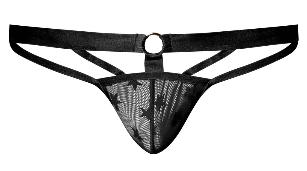 Make a bold and edgy statement with this sheer star mesh thong, perfect for those who love unique and provocative styles. The front pouch features a transparent fabric with a subtle star pattern, adding an intriguing touch, while the strappy design includes a metal ring detail for extra flair. The minimalistic thong back provides a barely-there feel, enhancing your physique with a flattering, daring silhouette. Crafted from soft, stretchy fabric, this thong offers a comfortable fit while bringing excitement to your collection.