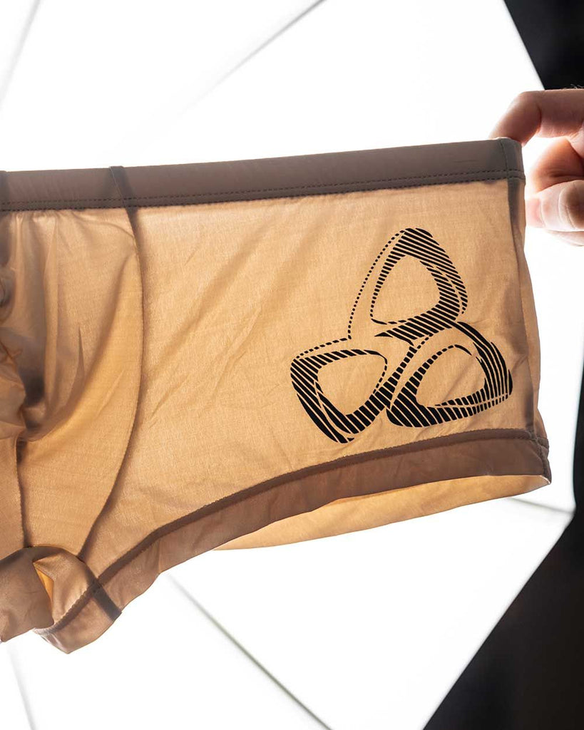 These men's trunks from Private Structure feature a sleek and minimalistic design, offering a refined and modern look. The smooth, lightweight fabric ensures a snug yet breathable fit, while the subtle black geometric logo on the front adds a stylish touch. The back includes a ruched seam for a better contouring effect, enhancing the overall fit and support.