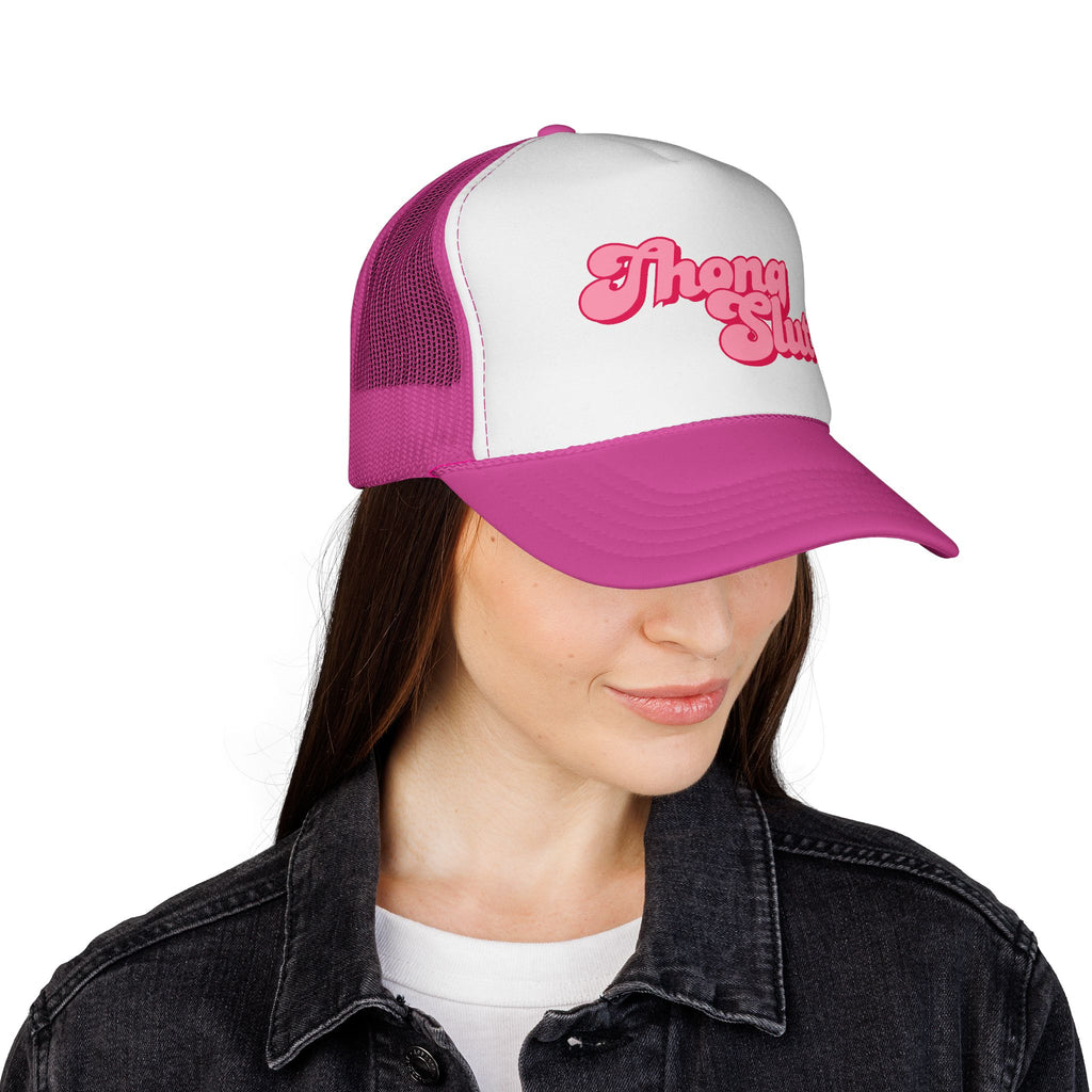 Pink 'Thang Slut' Trucker Cap — Retro Script Mesh Baseball Hat