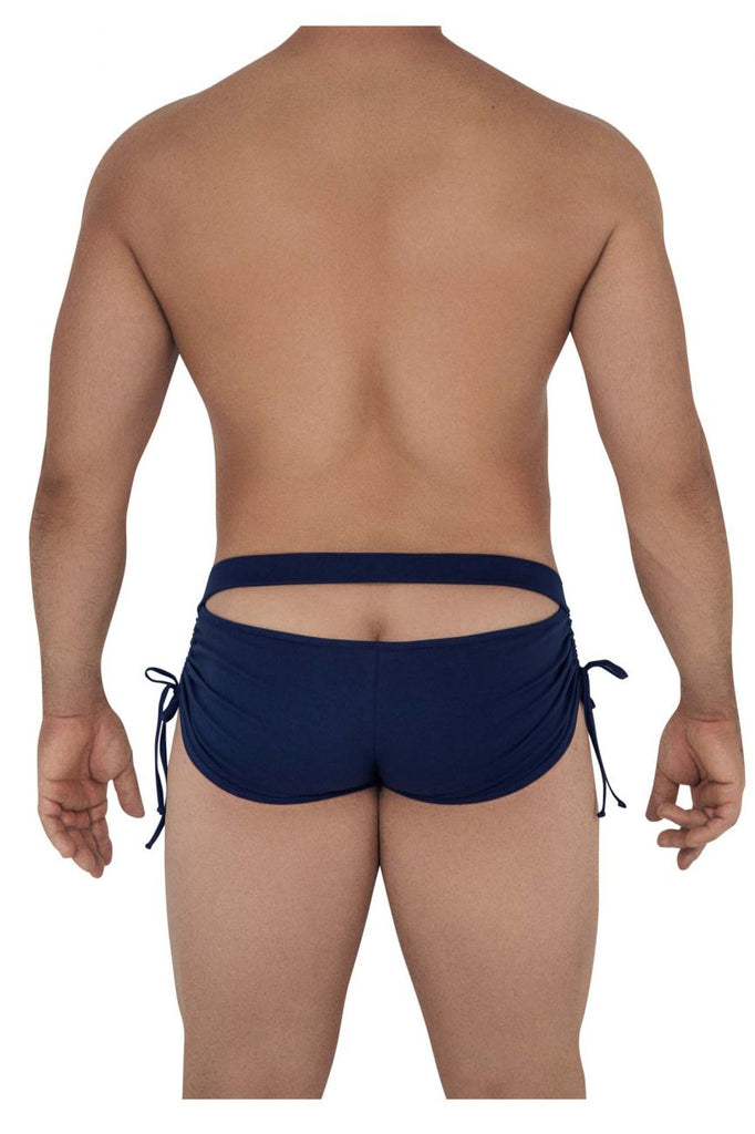 A mini short, with high cut elasticized legs,  natural comfort,  horizontal opening on the back.