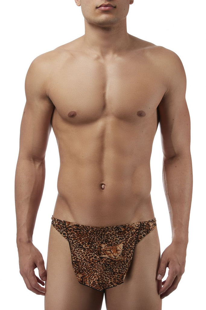 The Male power 329030 Animal Tarzan Thong features classic thong with front and back flaps attached.