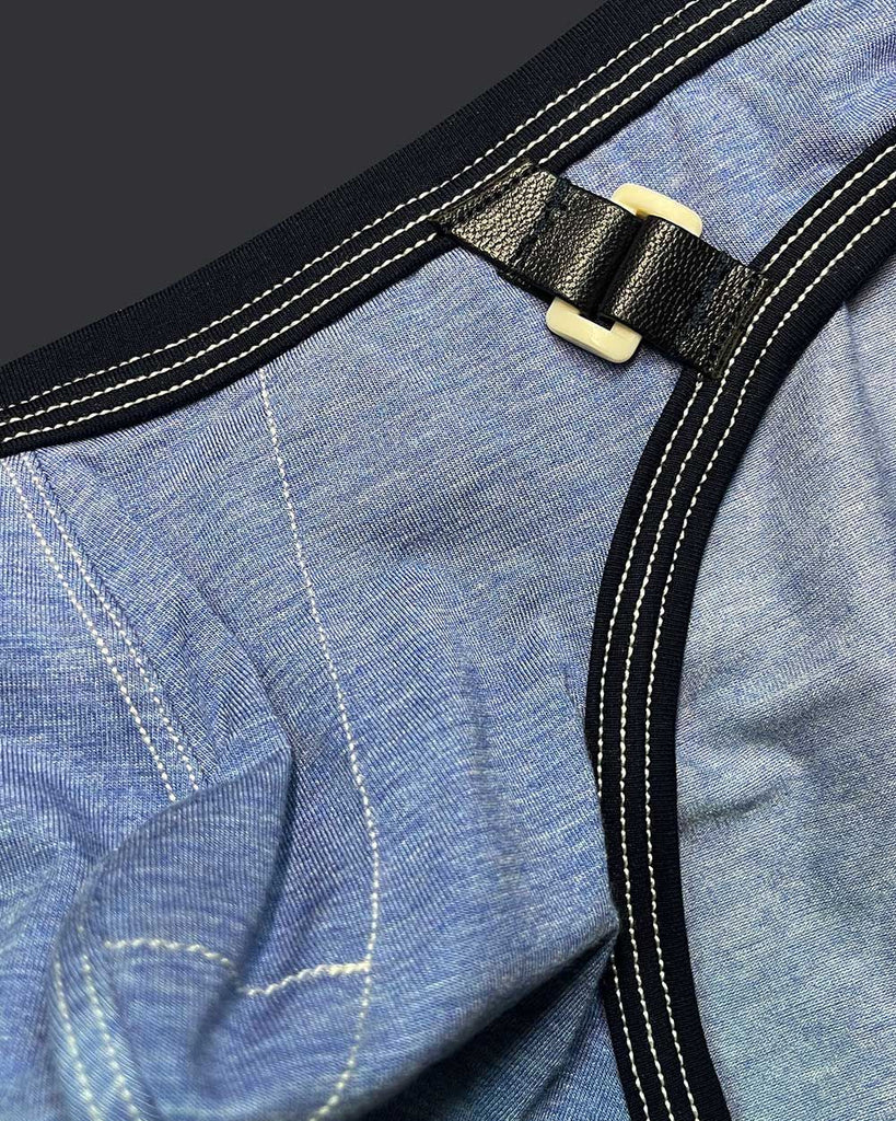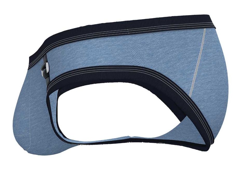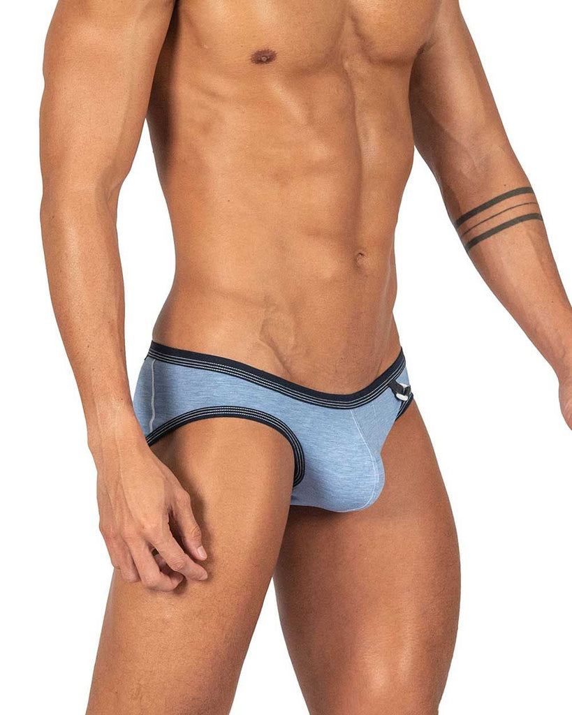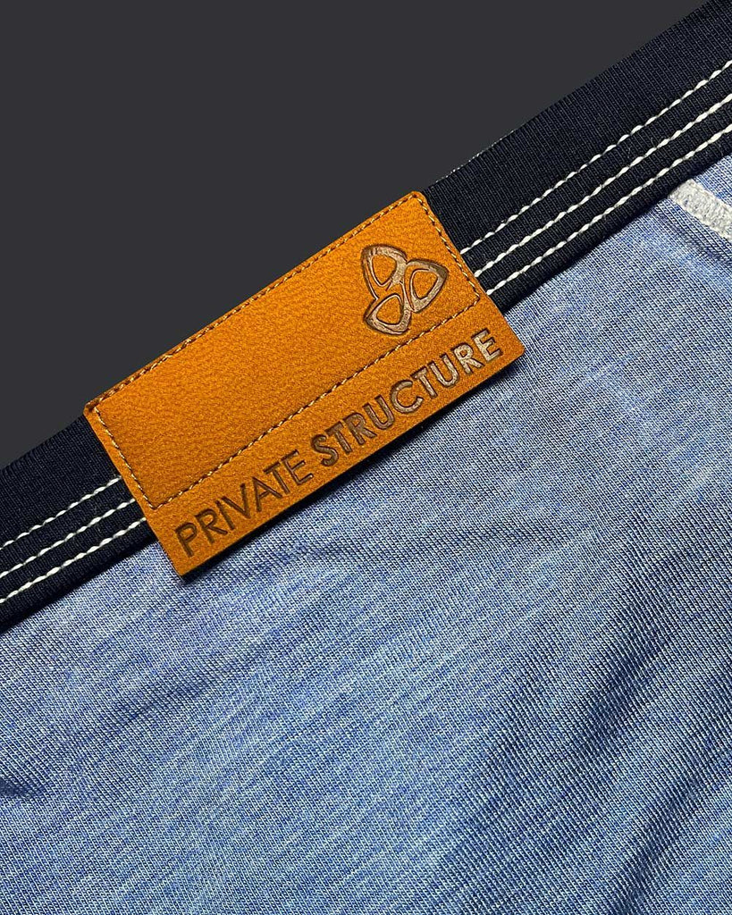 These men's briefs from Private Structure feature a stylish fabric with contrasting black trim details, giving them a modern and rugged look. The soft, stretchable material ensures a comfortable and breathable fit, while the low-rise cut provides a sleek silhouette. A small metallic buckle accent on the front and a leather brand tag on the back add a touch of uniqueness to the design.